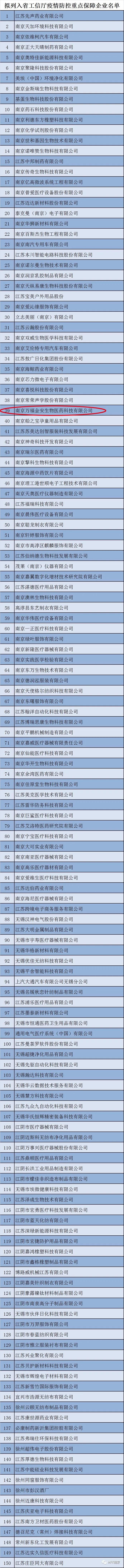 脊梁!江蘇省工信廳公示新冠肺炎疫情防控重點(diǎn)保障企業(yè)名單