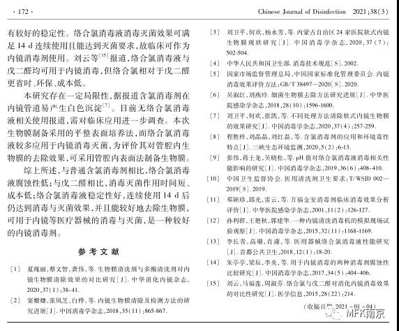 由中國疾病預(yù)防控制中心環(huán)境與健康相關(guān)產(chǎn)品安全所撰寫的《絡(luò)合氯消毒液對(duì)內(nèi)鏡生物膜去除效果及腐蝕性研究》近期發(fā)表于《中國消毒學(xué)雜志》。